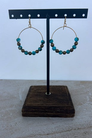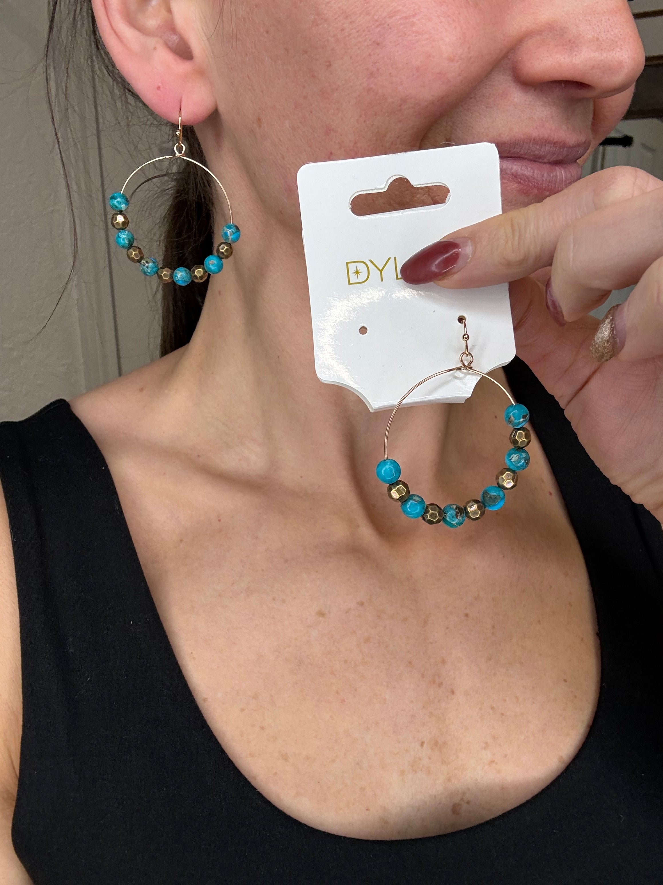 Fishhook dangle earrings featuring stone beads on gold hoop Please expect some variation in color/texture due to natural material. Circumference: approx 1.5"