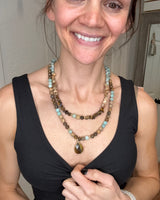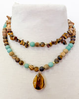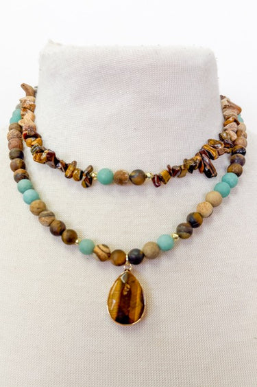 Beautiful double strand beaded necklace with stone beads and stone pendant.