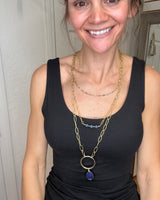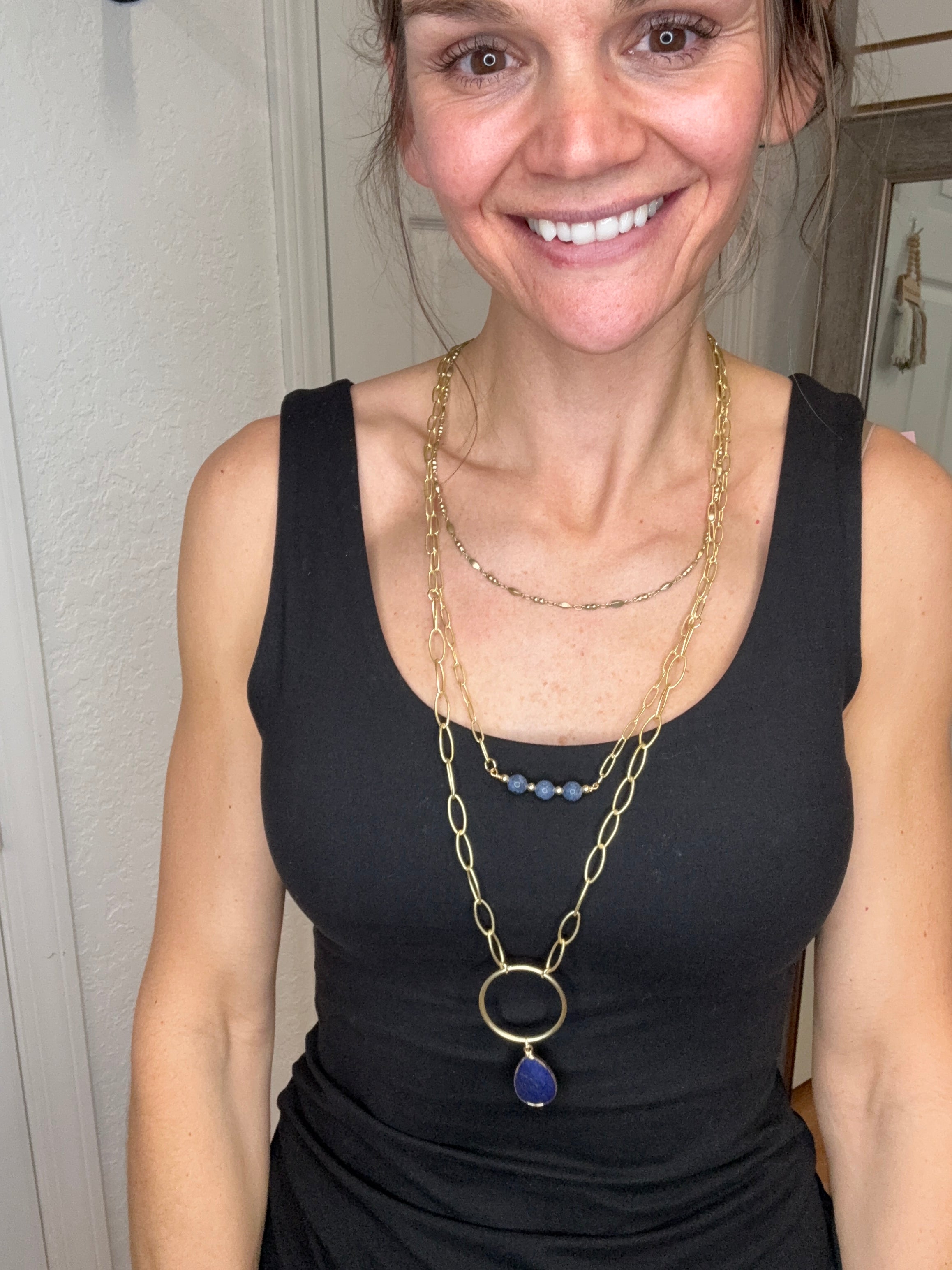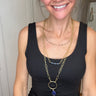 Elevate your everyday style with the Hadlee necklace, a stunning three-strand design crafted in lustrous gold. Each strand features captivating blue stones that catch the light beautifully, creating an eye-catching layered effect. Perfect for adding sophistication to any outfit, this versatile piece transitions seamlessly from casual to formal occasions. The multi-strand construction offers visual depth and dimension, making it a standout accessory that complements both classic and contemporary wardrobes.