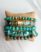 5 Bracelets using a mix of natural stones, glass beads, shells,