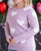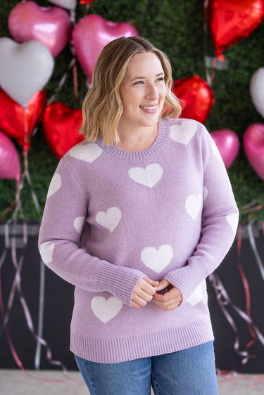 Wrap yourself in cozy charm with the Endless Love Sweater in soft lavender. Featuring a playful hearts pattern and a comfortable crew neck, this sweater is perfect for celebrating Valentine’s Day or adding a sweet touch to your spring wardrobe. Its gentle hue and whimsical design make it an easy favorite for brightening up any day.