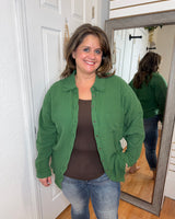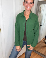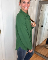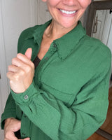 GARLYN GAUZE BUTTON DOWN COVER UP TOP GREEN- ZENANA