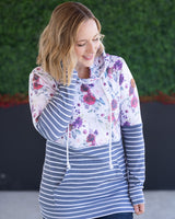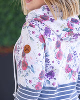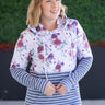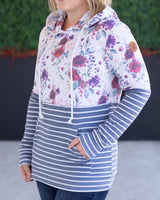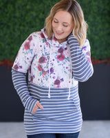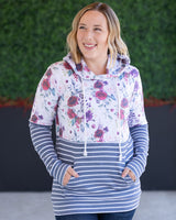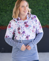 IN STOCK Hailey Pullover Hoodie - Burgundy Bloom and Grey Stripes