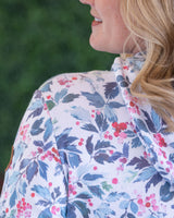 Stay cozy and stylish this fall with the Hailey Pullover Hoodie. Made with triple stretch for maximum comfort, this hoodie features a winter berry pattern on the top and a heathered evergreen on the bottom. Perfect for the holiday season!