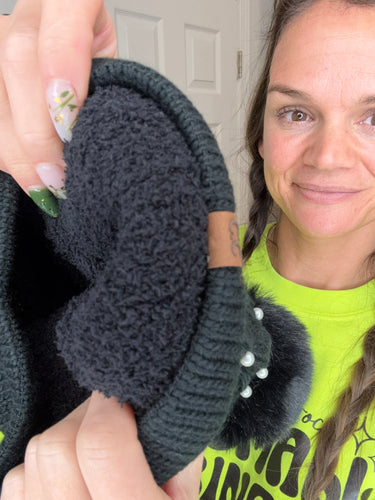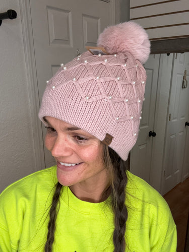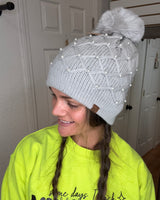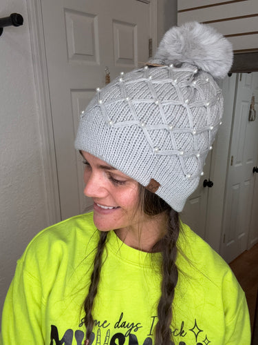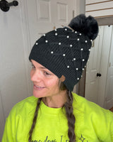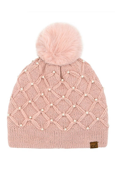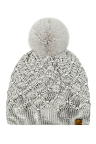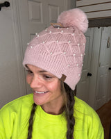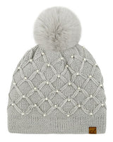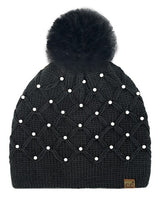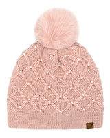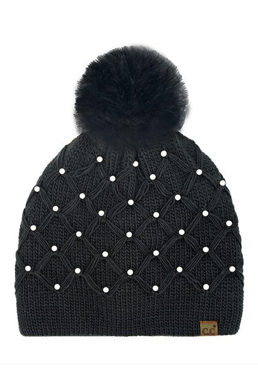 ALLOVER PEARL CROCHET POM BEANIE HAT- CC