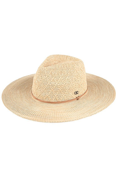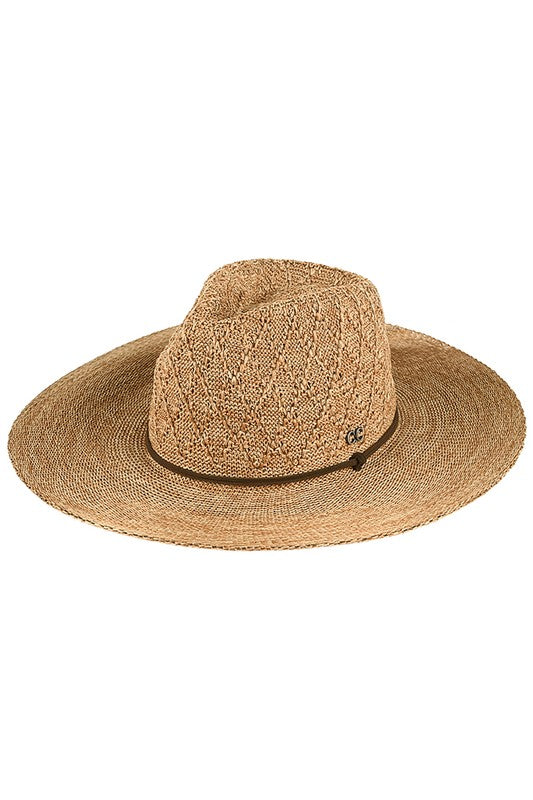 Lightweight and travel-ready, this C.C Packable Panama Hat combines classic style with practical convenience. Crafted from 100% polyester, it folds compactly without losing its shape, making it perfect for vacations, beach days, or everyday wear. The 3.75" brim provides excellent sun protection while the structured 4.25" crown maintains a polished silhouette. With a comfortable 22.63" circumference, this versatile hat transitions seamlessly from resort to city streets.