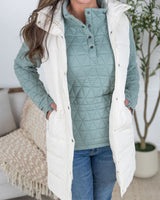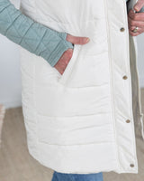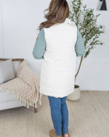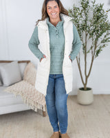 Introducing the Harlow Long Vest in cream. With its convenient pockets, zipper and button closure and versatile pairing options with our Leah or Larissa tops, this vest is a must-have for any wardrobe. Get ready to fall in love and complete your fall and winter looks!