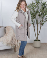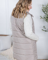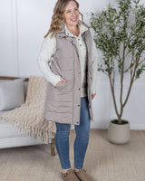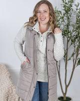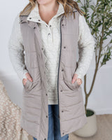 Introducing the Harlow Long Vest in latte! With its convenient pockets, zipper and button closure and versatile pairing options with our Leah or Larissa tops, this vest is a must-have for any wardrobe. Get ready to fall in love and complete your fall and winter looks!