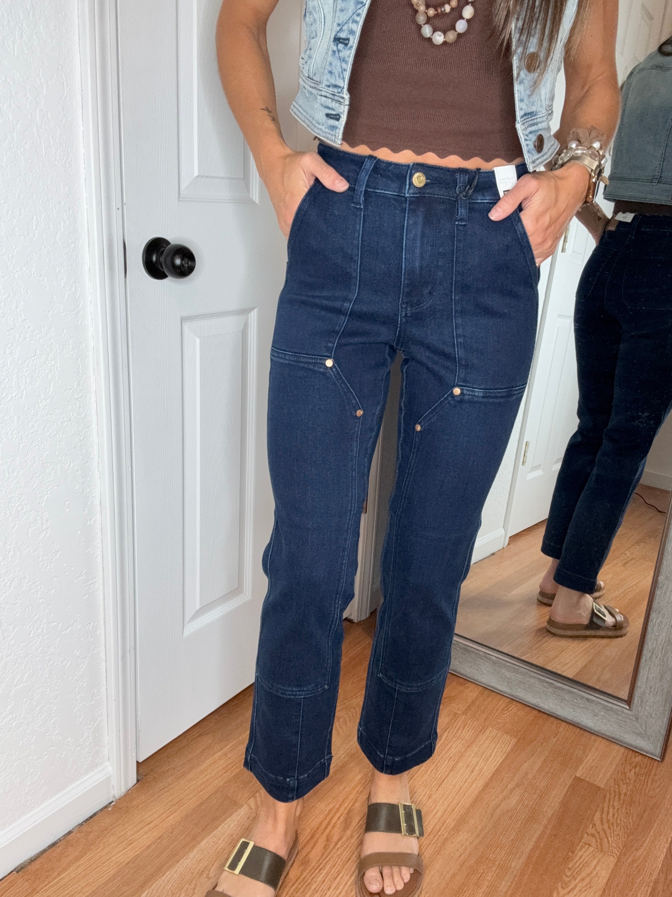 Jazzy Straight Leg Denim Jeans by Judy Blue offer durable comfort with decorative knee patches designed for a work wear look. The straight leg fit ensures ease of movement without sacrificing style, making them a reliable choice for active days. Built to support your busy lifestyle, these jeans combine practicality and a timeless look.
