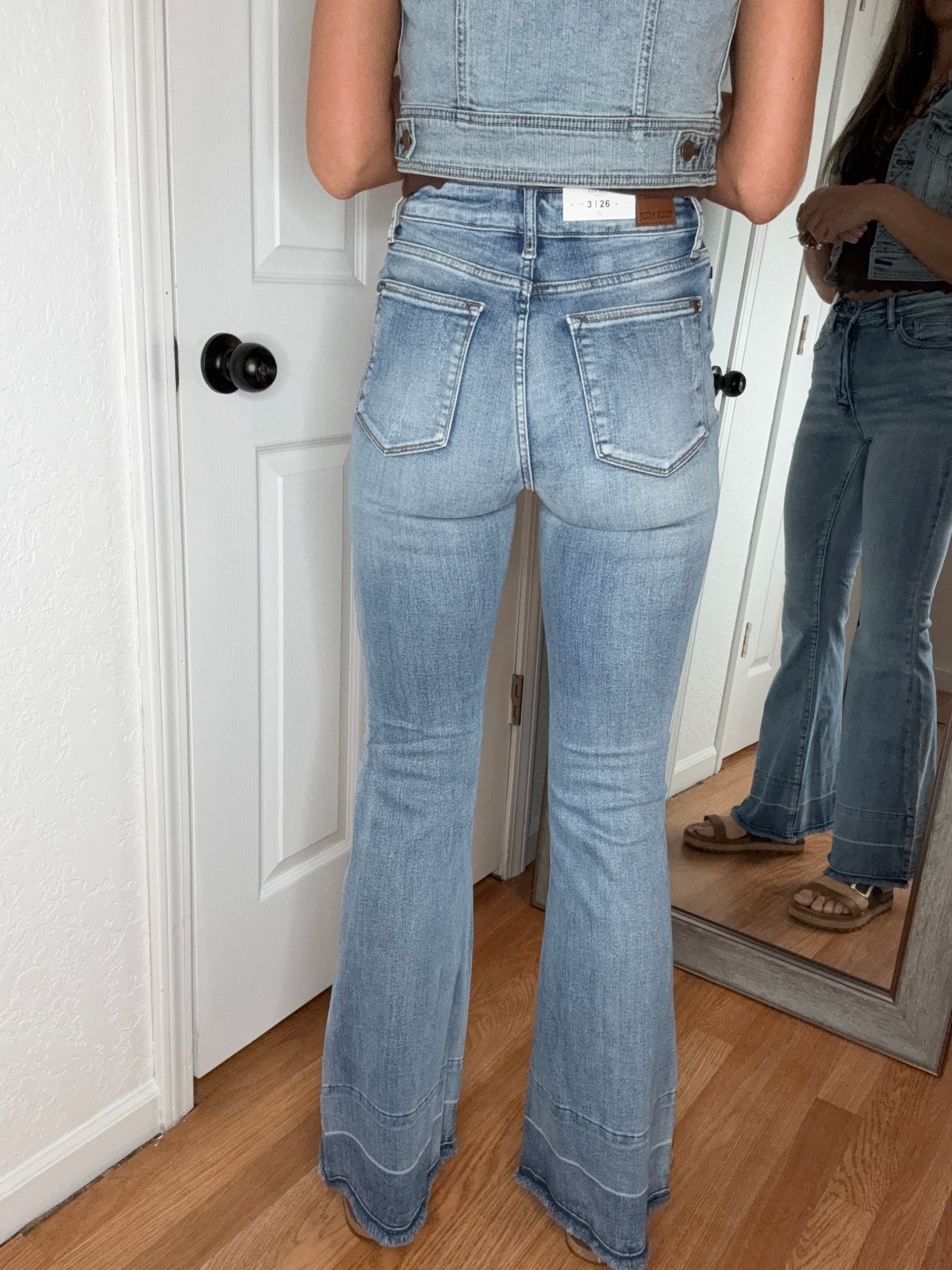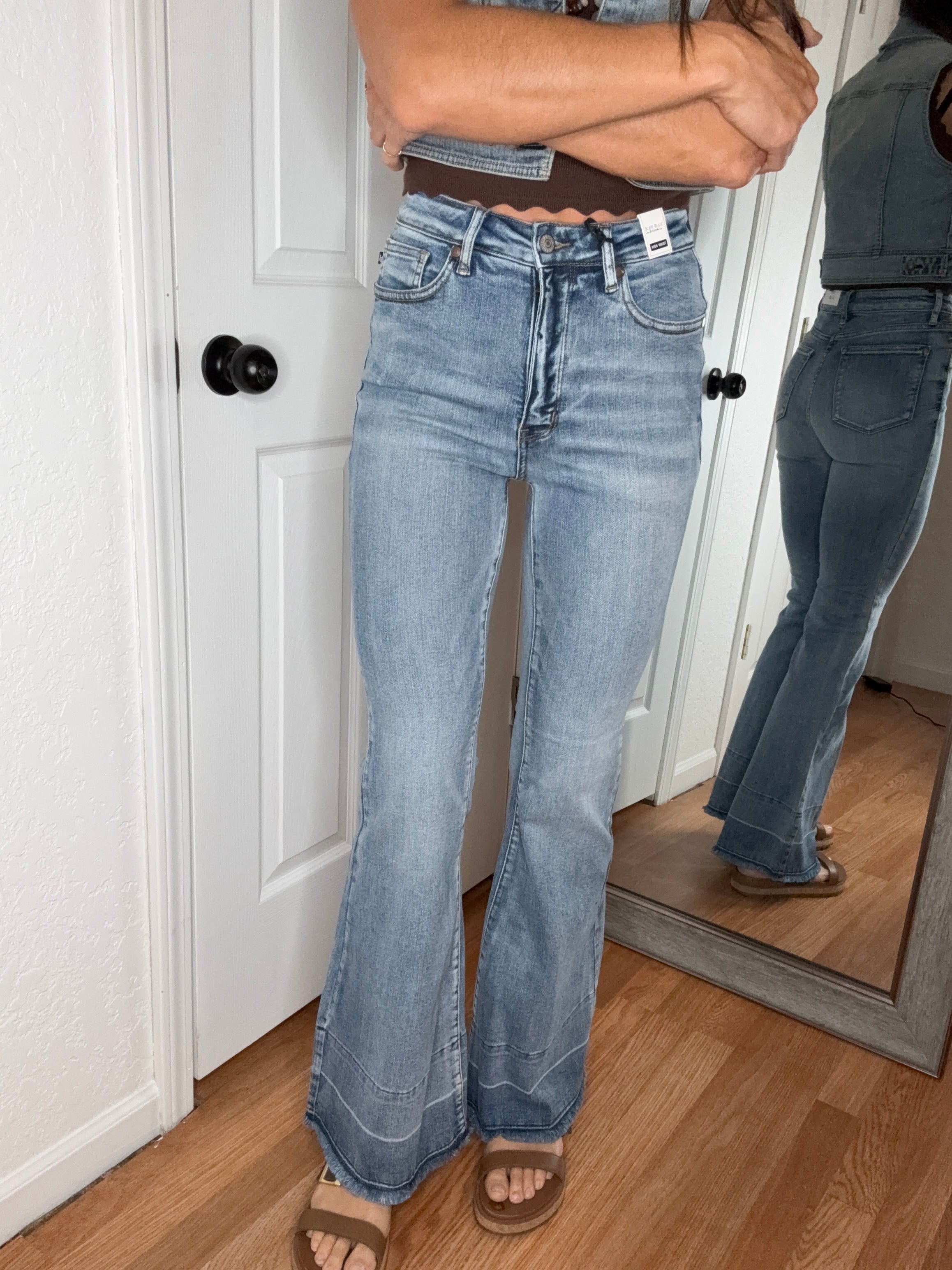 RILEY RETRO RELEASED HEM FLARE DENIM JEANS - JUDY BLUE