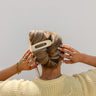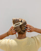 These clips are extra big, and can hold all your hair back without creasing it. They are unique, sturdy, and so stylish. ALSO added bonus that they are flat, so you can pull your hair back in a 'claw style' and still be able to lay your head on the headrest when you drive or lay down flat without it hurting your head!