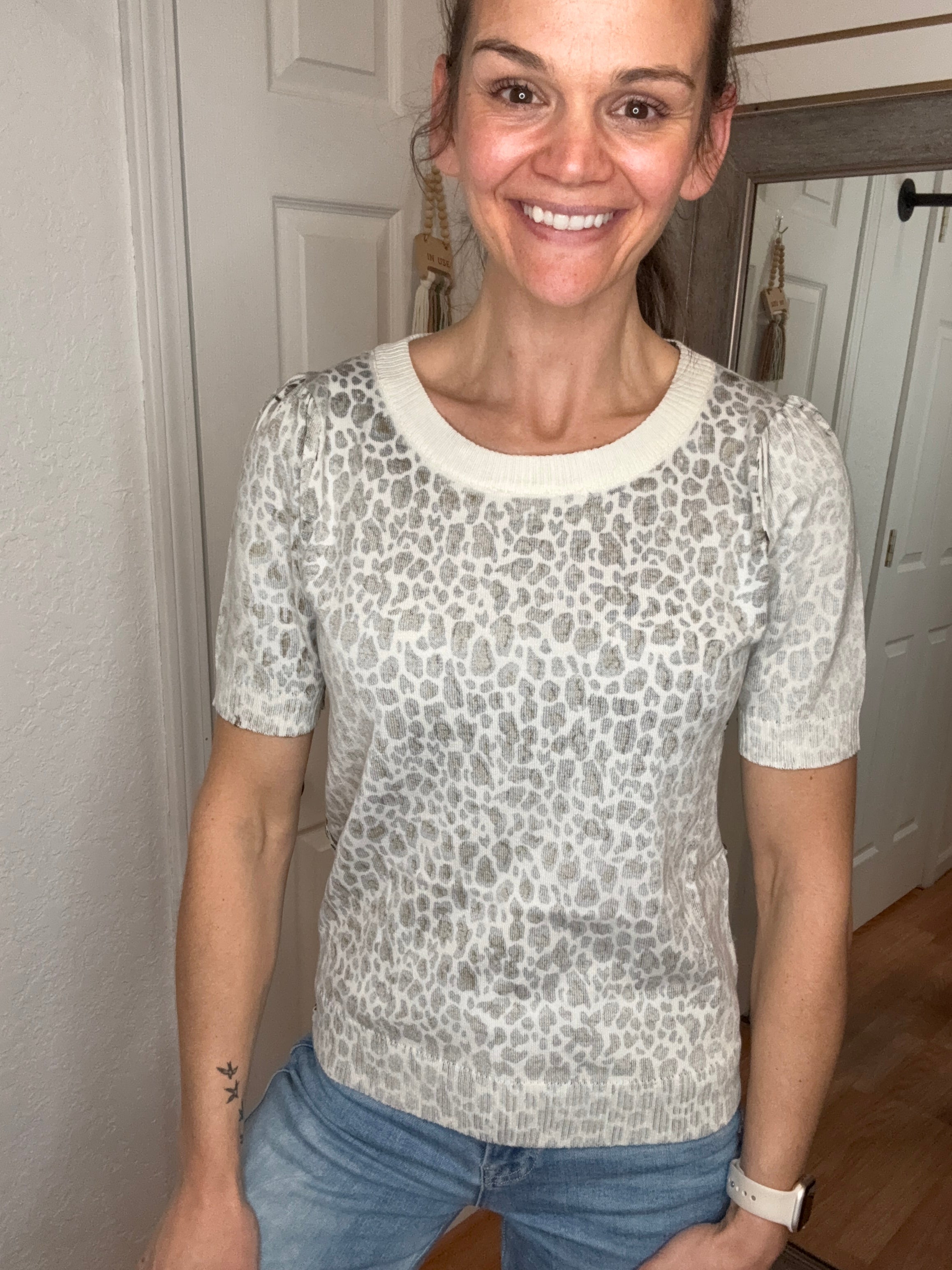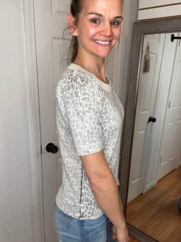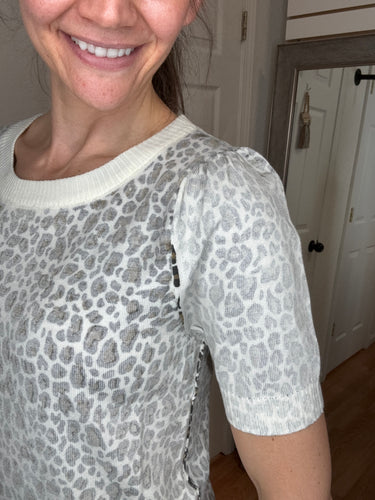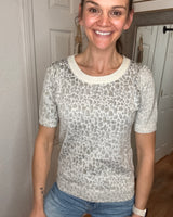 Larson Leopard Short Sleeve Top White Birch