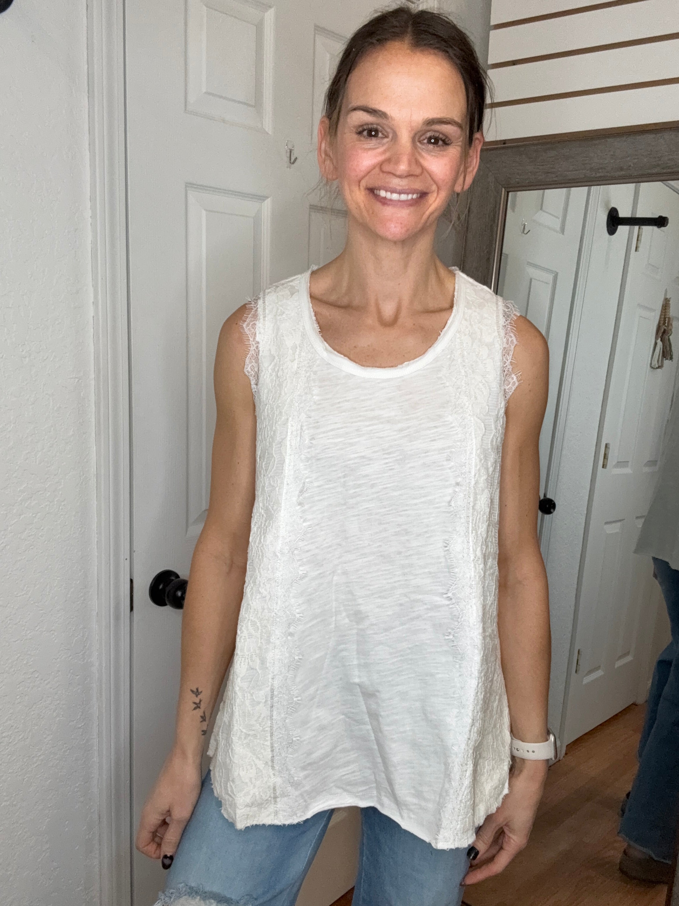 Liora Lace Trimmed Tank Top Ivory- Vocal