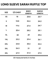This Long Sleeve Sarah Ruffle Top is perfect for adding a touch of playful elegance to any outfit. With its long sleeves and delicate ruffle design, it's both stylish and comfortable. Dress it up or down, this top is sure to make you happy in any occasion. Made with a soft and stretchy fabric-this will be your go to top for fall!