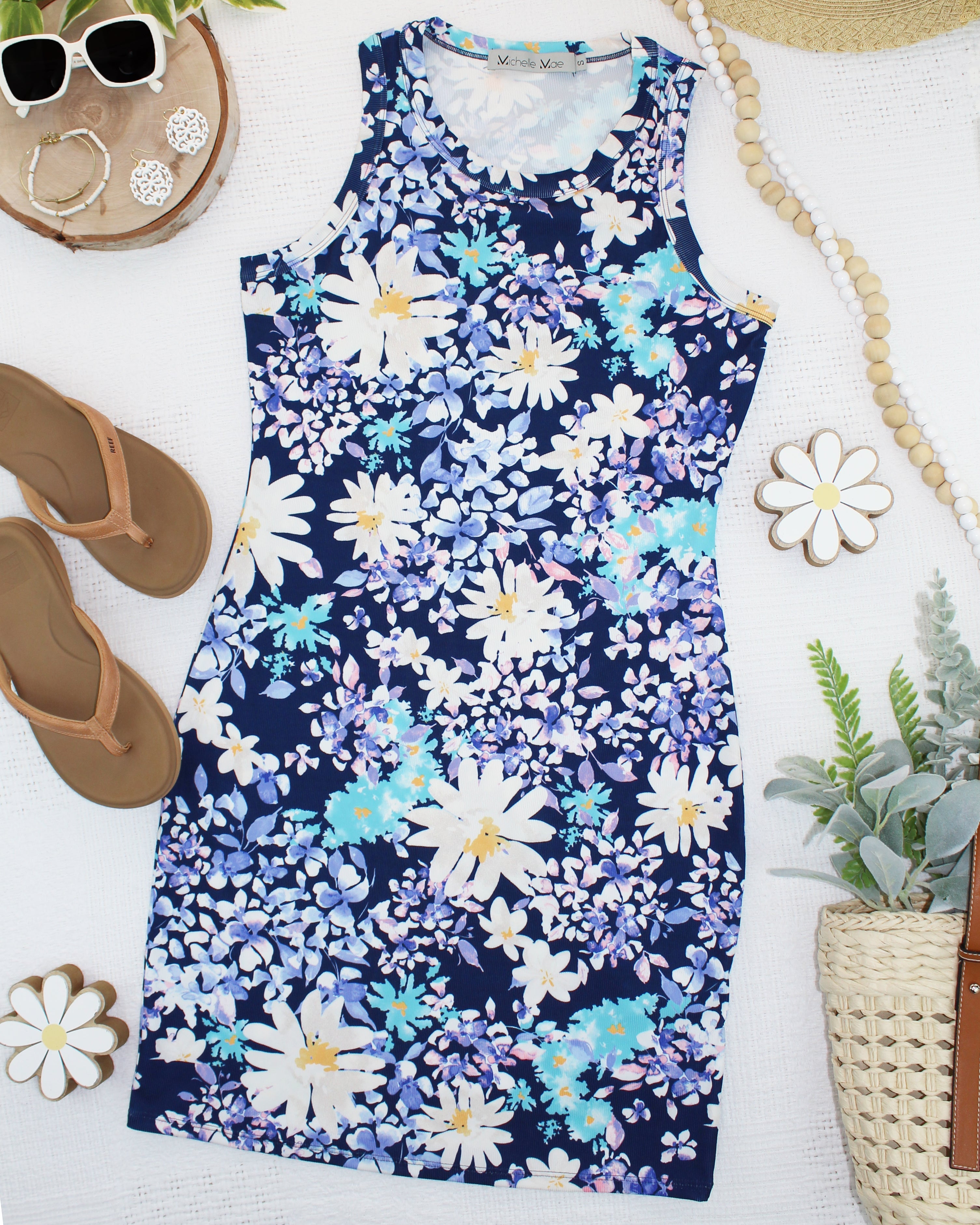 The Mariah Ribbed Dress brings effortless summer style with its charming daisy print and flattering form-fitted silhouette. Crafted from soft ribbed fabric that hugs your curves just right, this dress is perfect for warm-weather adventures—whether you're heading to brunch, a garden party, or a casual day out. The playful daisy pattern adds a cheerful touch that pairs beautifully with sneakers or sandals. Comfortable, cute, and ready for anything.