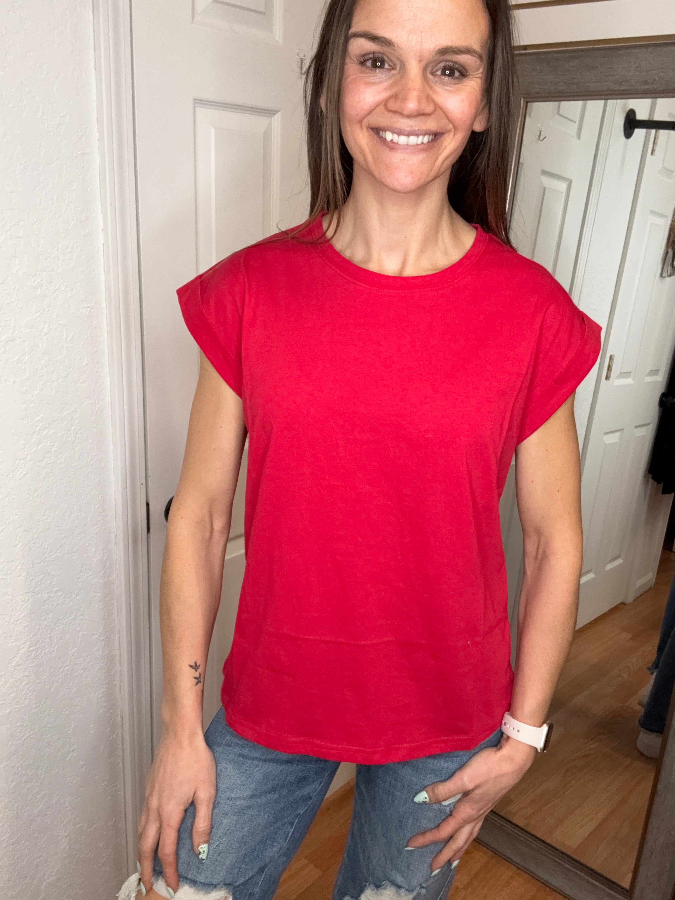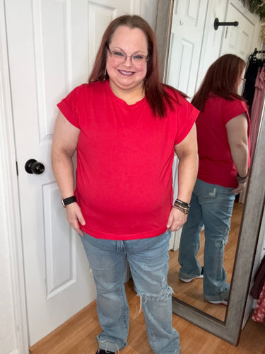 Meisha Short Sleeve Top Red Zenana