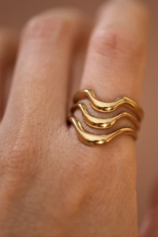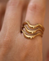 18K gold plated stainless steel ring. The ring is hypoallergenic, waterproof, fade-resistant, and tarnish-free. Perfect for everyday wear or special occasions. Adjustable Ring | Statement Ring | Minimal Ring | Real Gold Dipped Ring | Gold Plated Ring | Waterproof & Sweatproof Ring | Simple Gold Ring