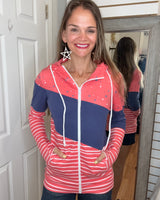 LIBERTY STARS NAVY AND STRIPES FULLZIP HOODIE - MICHELLE MAE