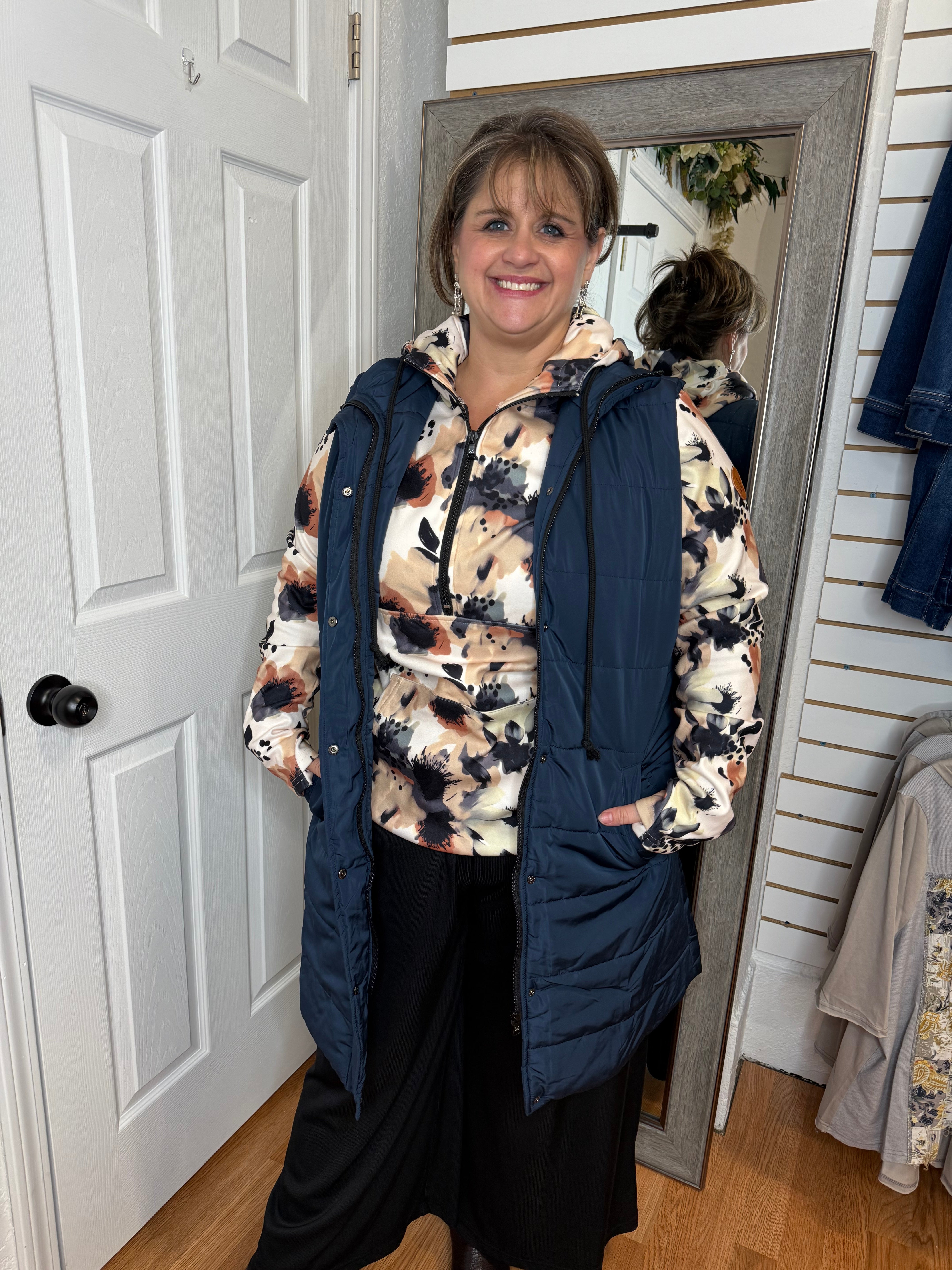 The Harlow Long Vest in Navy is a staple from fall through spring. With its convenient pockets, zipper and button closure and versatile pairing options with our Leah or Larissa tops, this vest is a must-have for any wardrobe. Get ready to fall in love and complete your fall and winter looks!