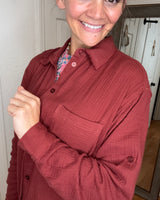 GAYLE GAUZE T-SHIRT DRESS/SHIRT COGNAC- MITTOSHOP