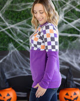 IN STOCK Natalie Pullover - Checkered Bats and Purple
