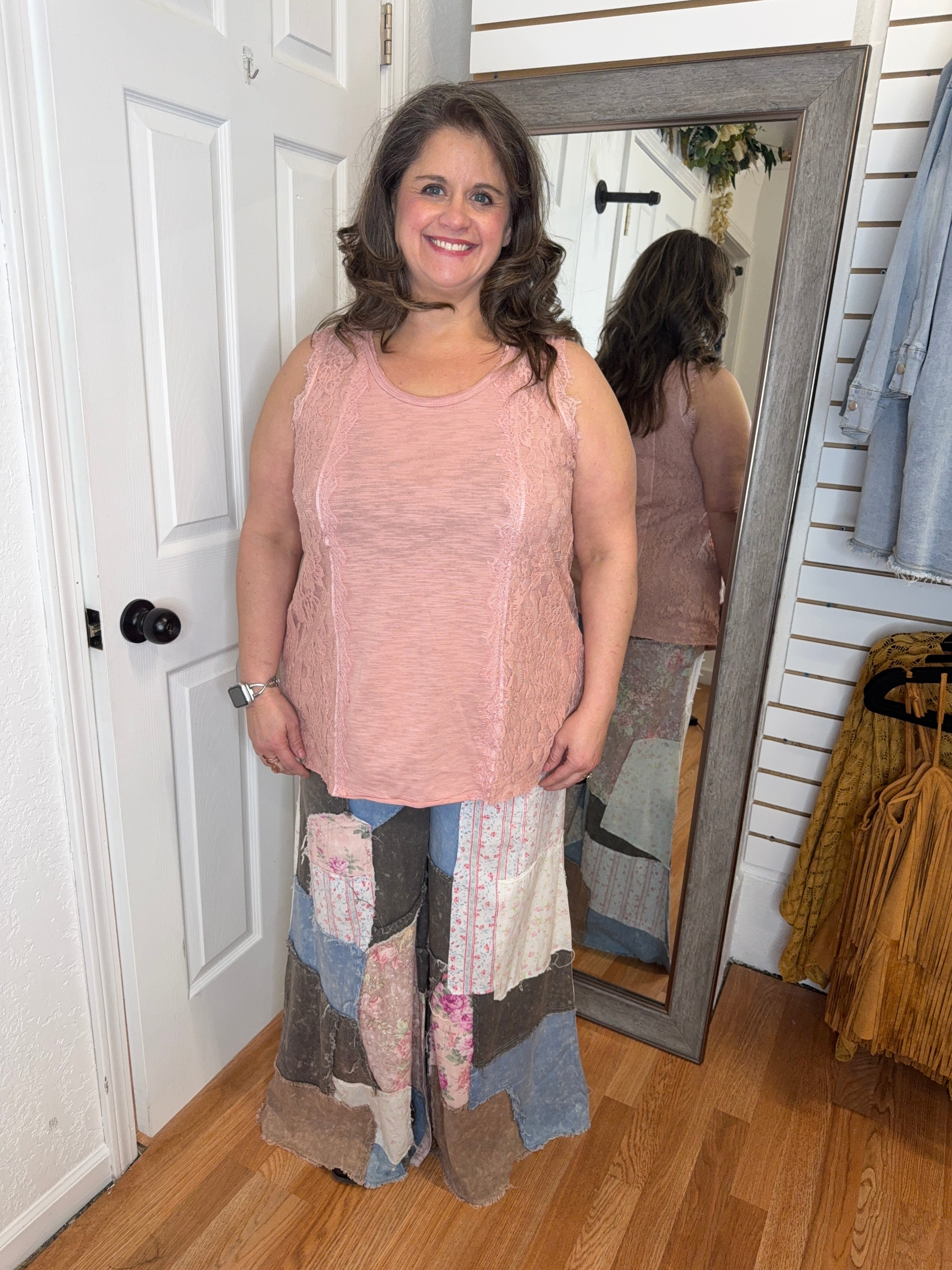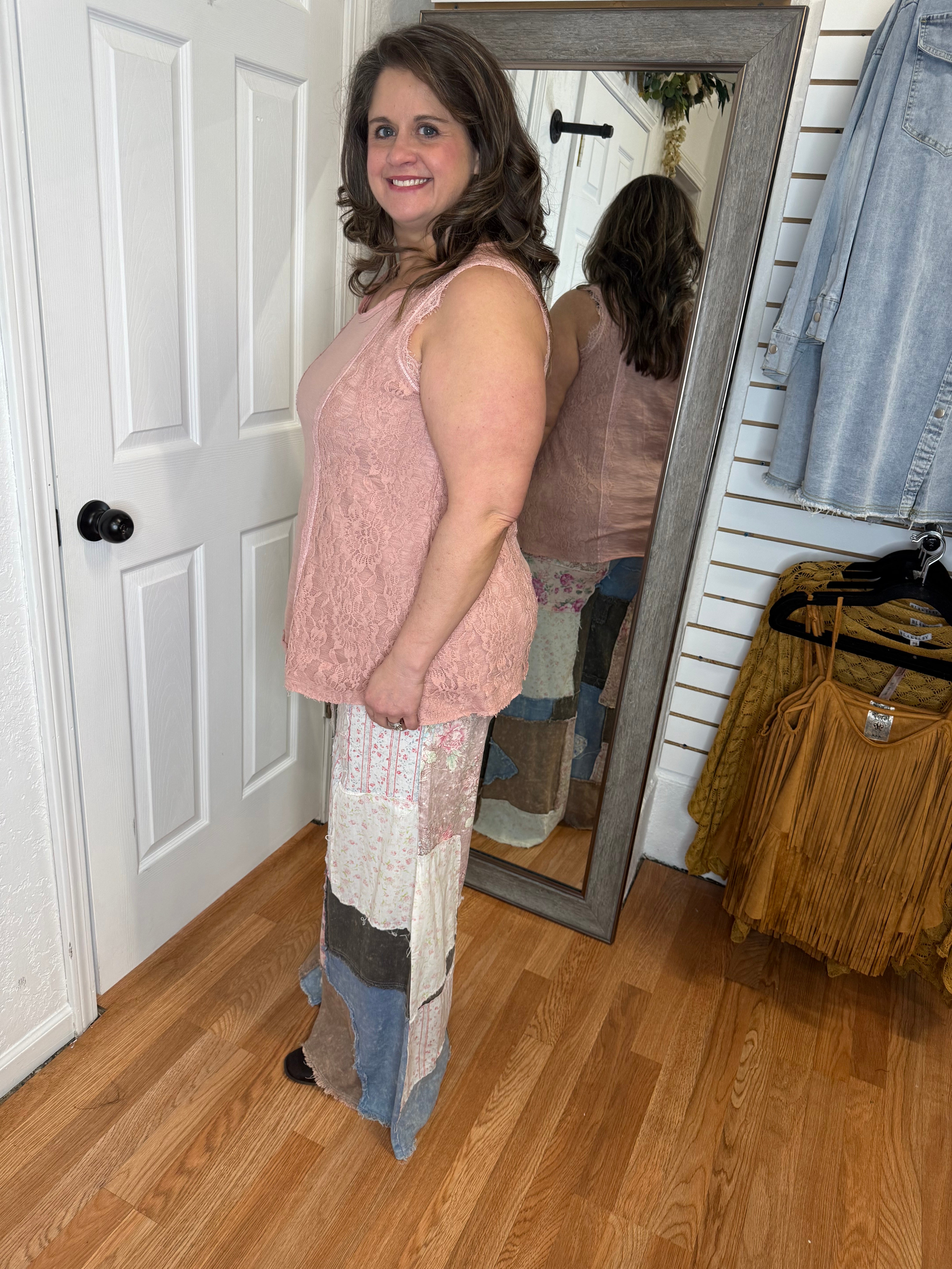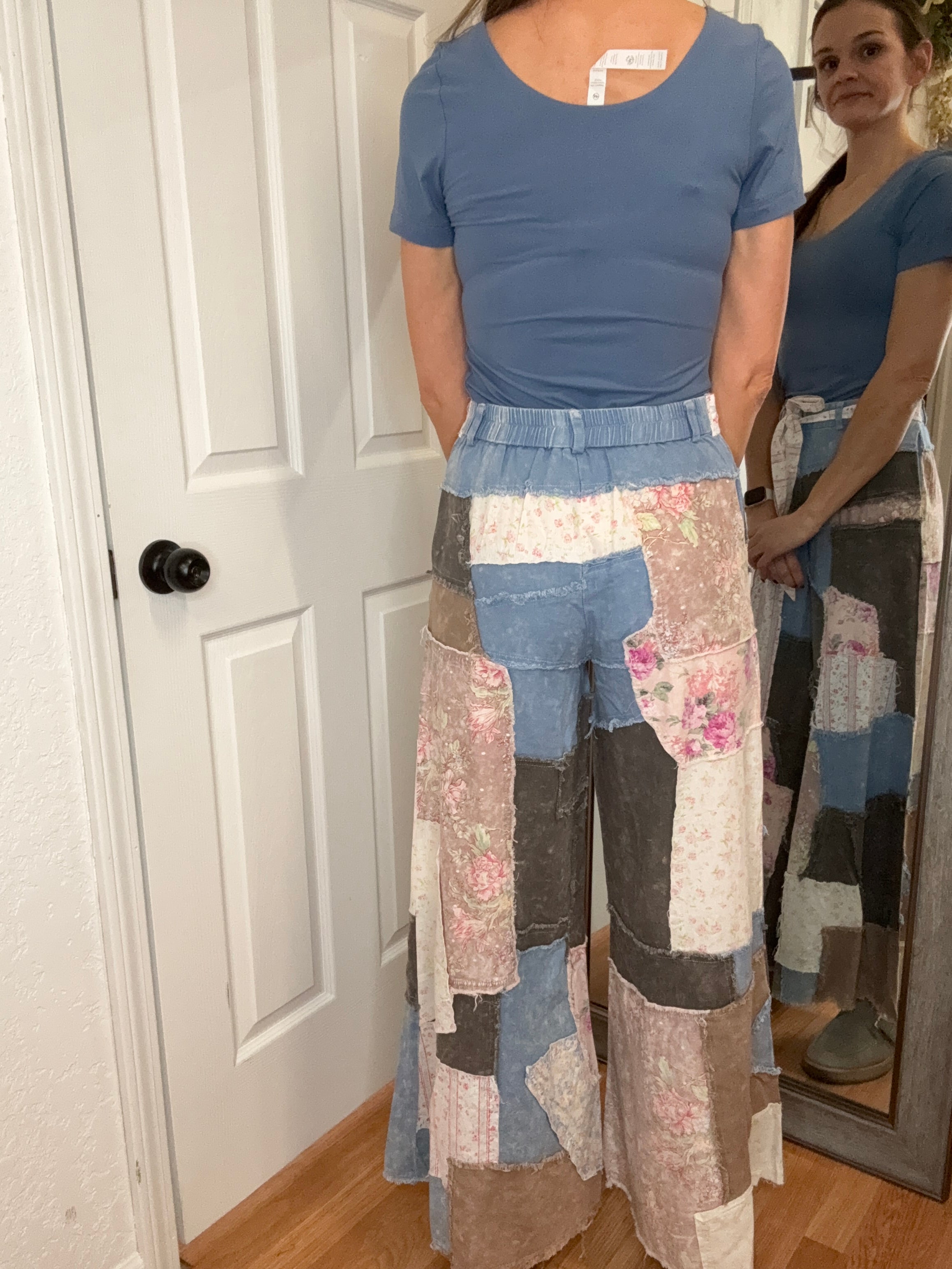 Embrace effortless style with these Patty Patchwork Pants from Oli & Hali. Featuring charming floral patchwork details that add personality to your everyday wardrobe, these relaxed-fitting pants offer all-day comfort. The elastic waist provides a flexible, forgiving fit that moves with you, making them perfect for casual outings or cozy days at home. Whether you're running errands or relaxing with friends, these pants deliver both comfort and character.