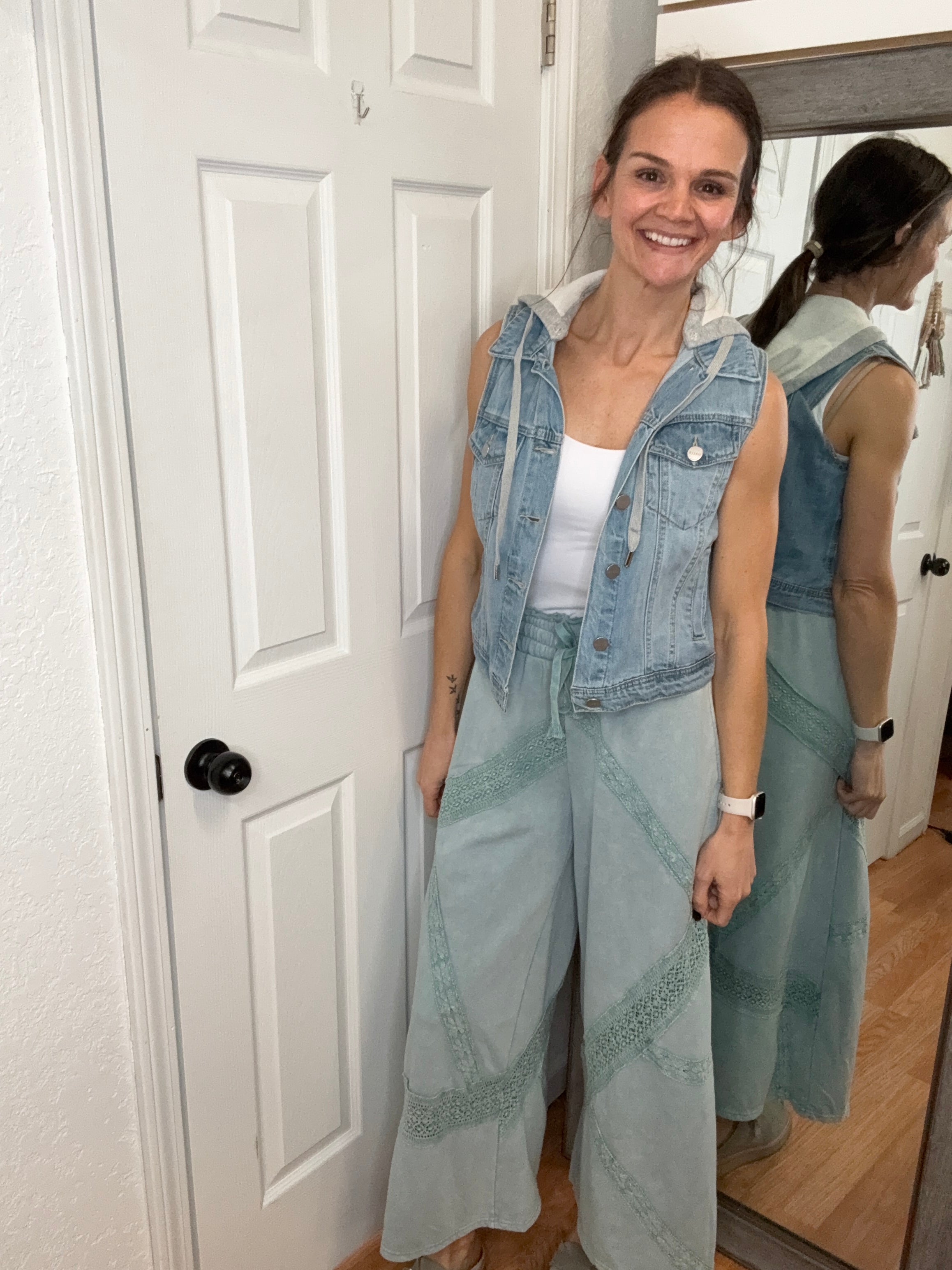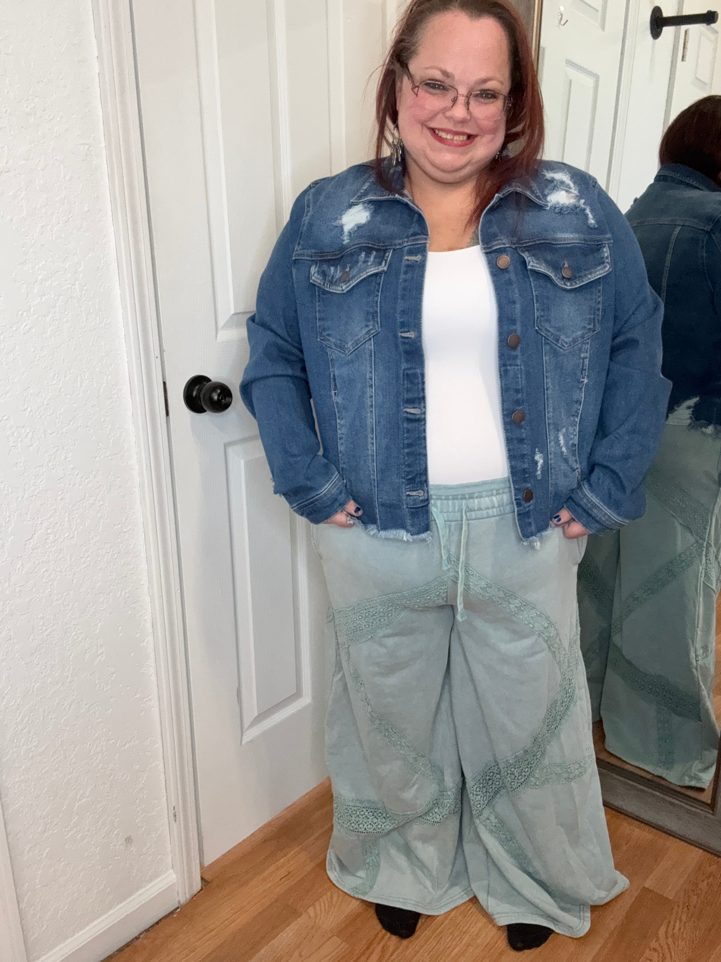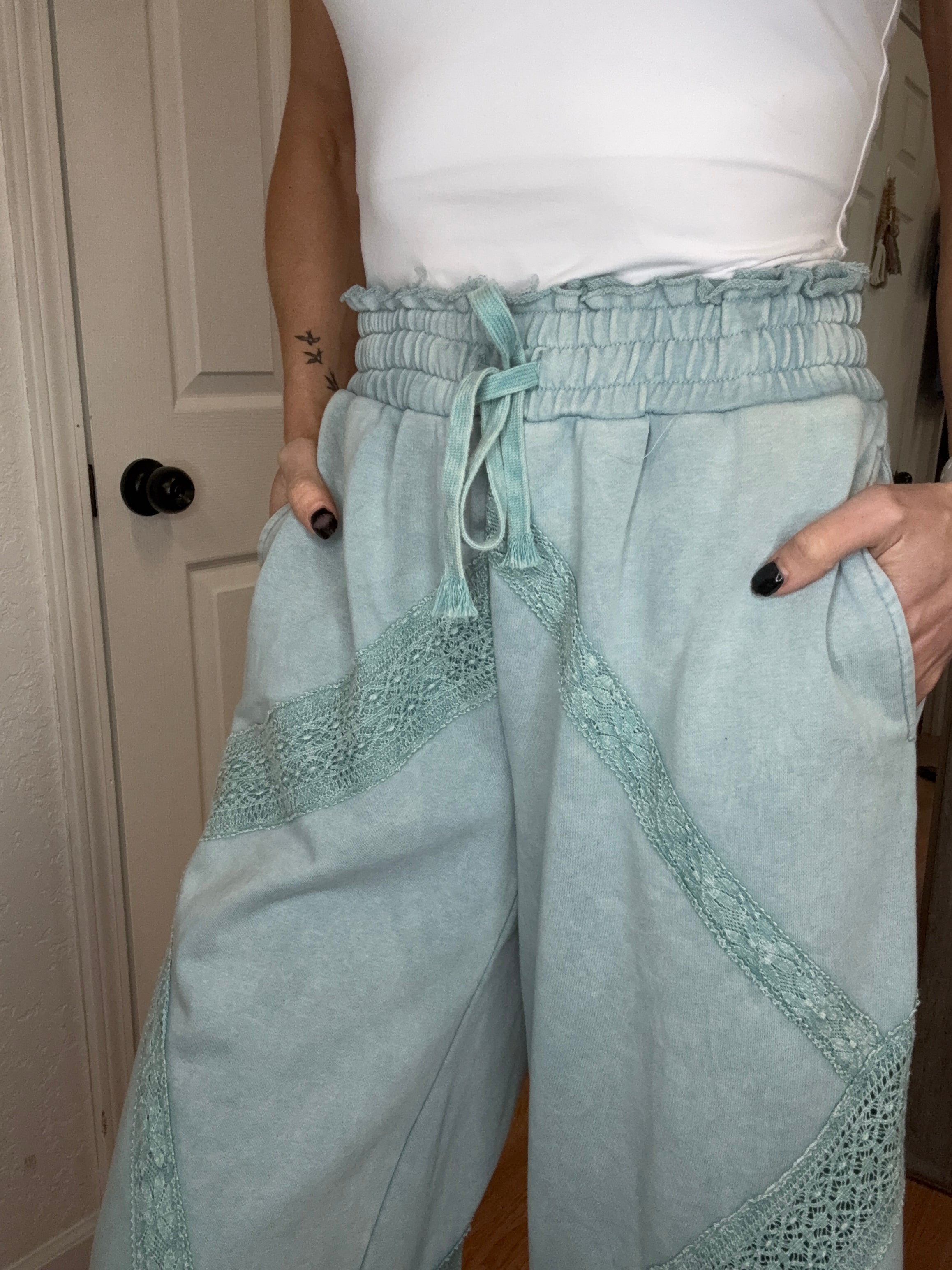 Slip into effortless comfort with the Maxine Relaxed Fit Pants from Oli & Hali. Crafted from plush terry cotton, these pull-on pants feature a forgiving elastic waist that moves with you throughout your day. Delicate lace detailing adds a touch of elegance to the relaxed silhouette, making them perfect for lounging at home or running errands in style. The soft, breathable fabric keeps you cozy without sacrificing sophistication. A wardrobe essential that celebrates both comfort and grace.
