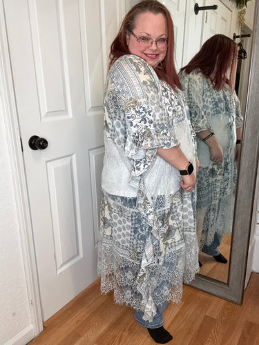 Embrace effortless elegance with the Charlene Boho Kimono from Oli & Hali. This oversized duster-length piece features a captivating boho print that brings artistic flair to any outfit. Delicate ruffle details add movement and dimension, creating a romantic, flowing silhouette perfect for layering or wearing solo. Whether you're dressing up a casual look or adding texture to your everyday style, this versatile kimono celebrates your unique sense of fashion with warmth and grace.