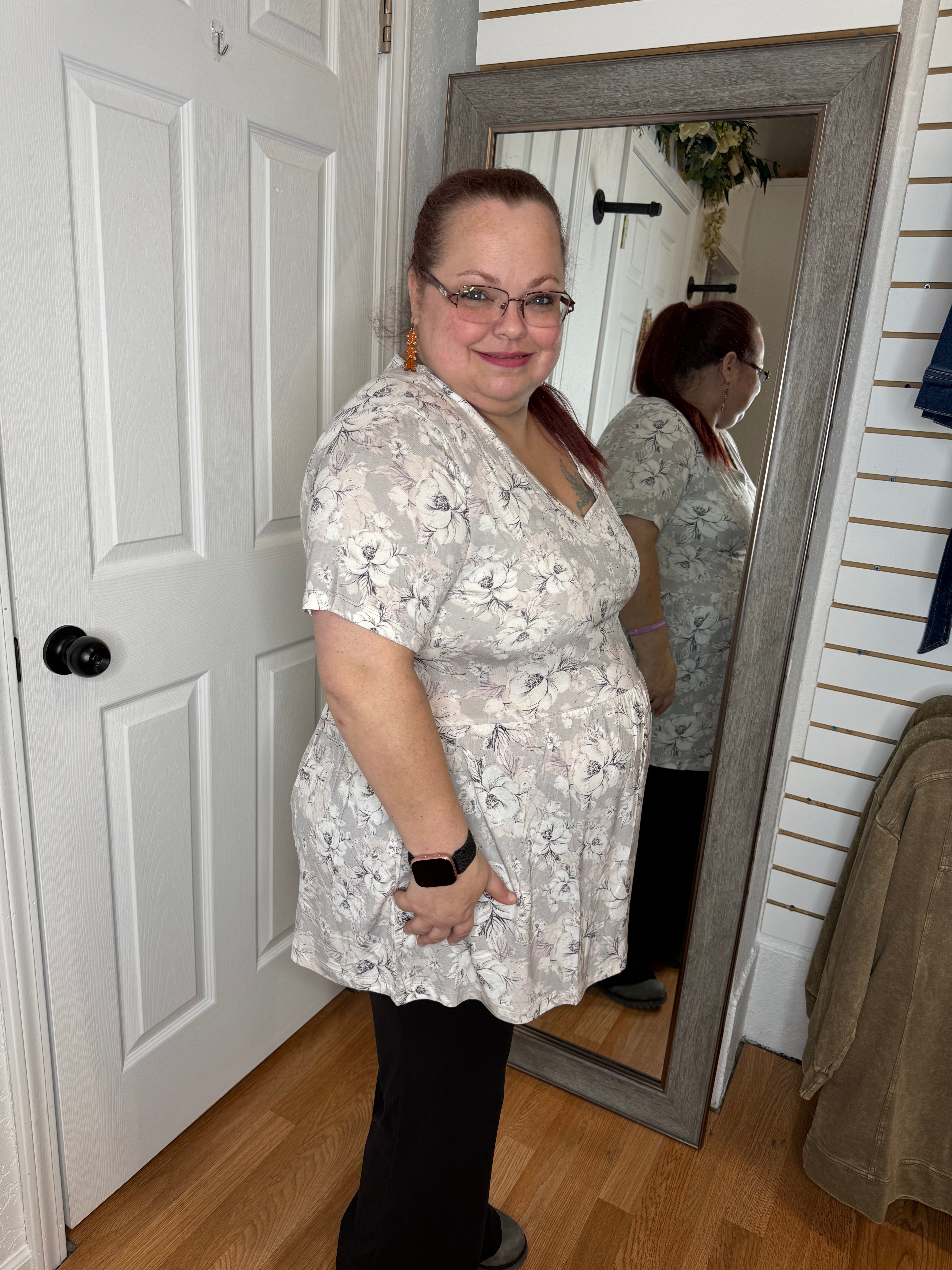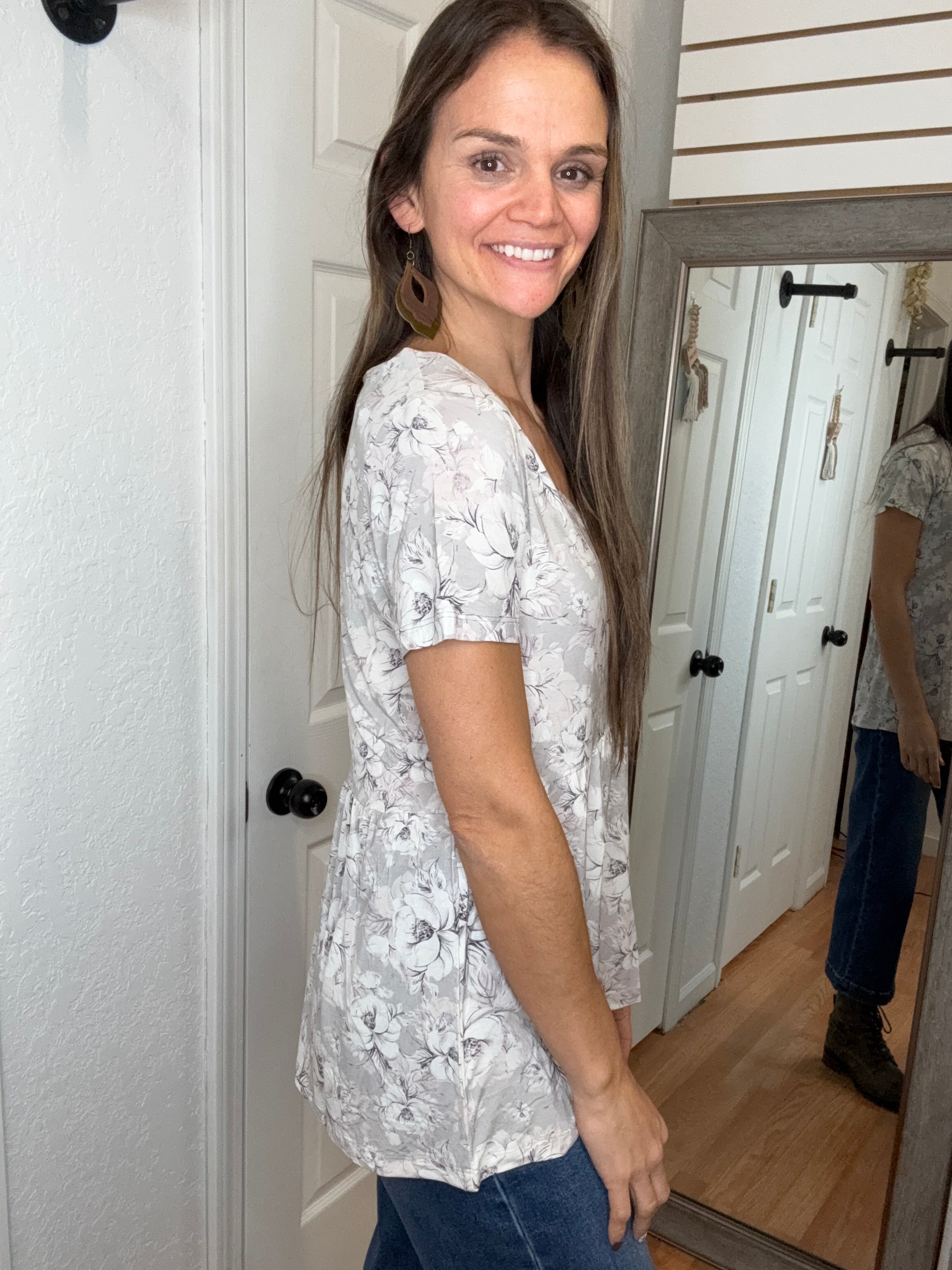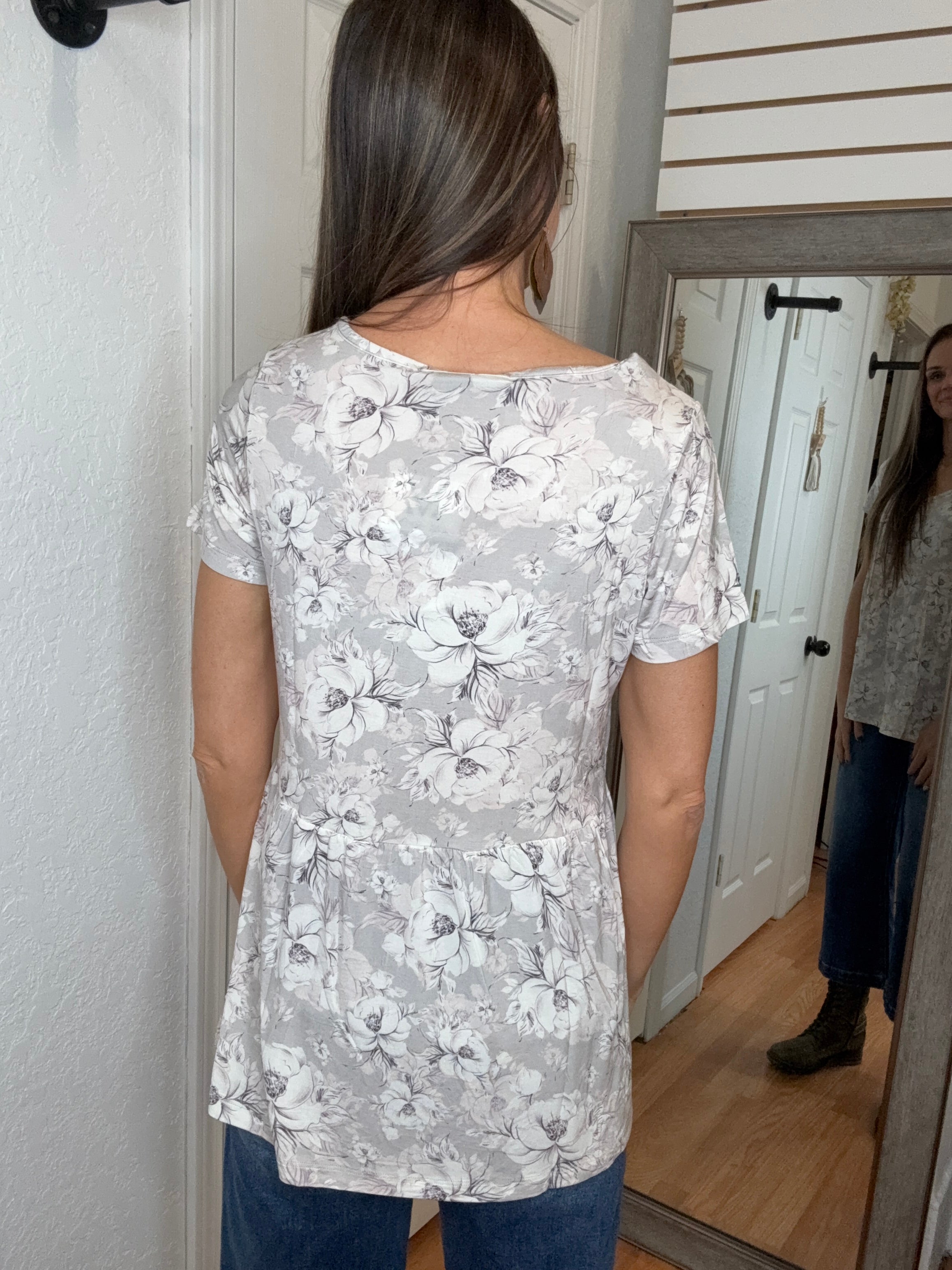 SARAH RUFFLE TOP VINTAGE GRAY- MICHELLE MAE