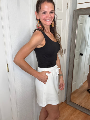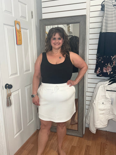 A skort crafted from luxurious, silky-smooth fabric with a built-in short for comfort and coverage. Blending elegance with an active look, it's perfect for both style and movement.
