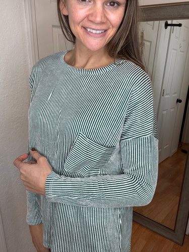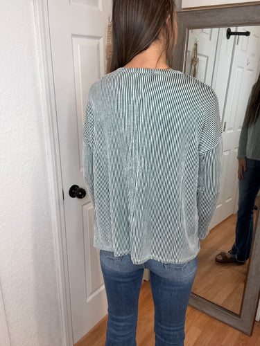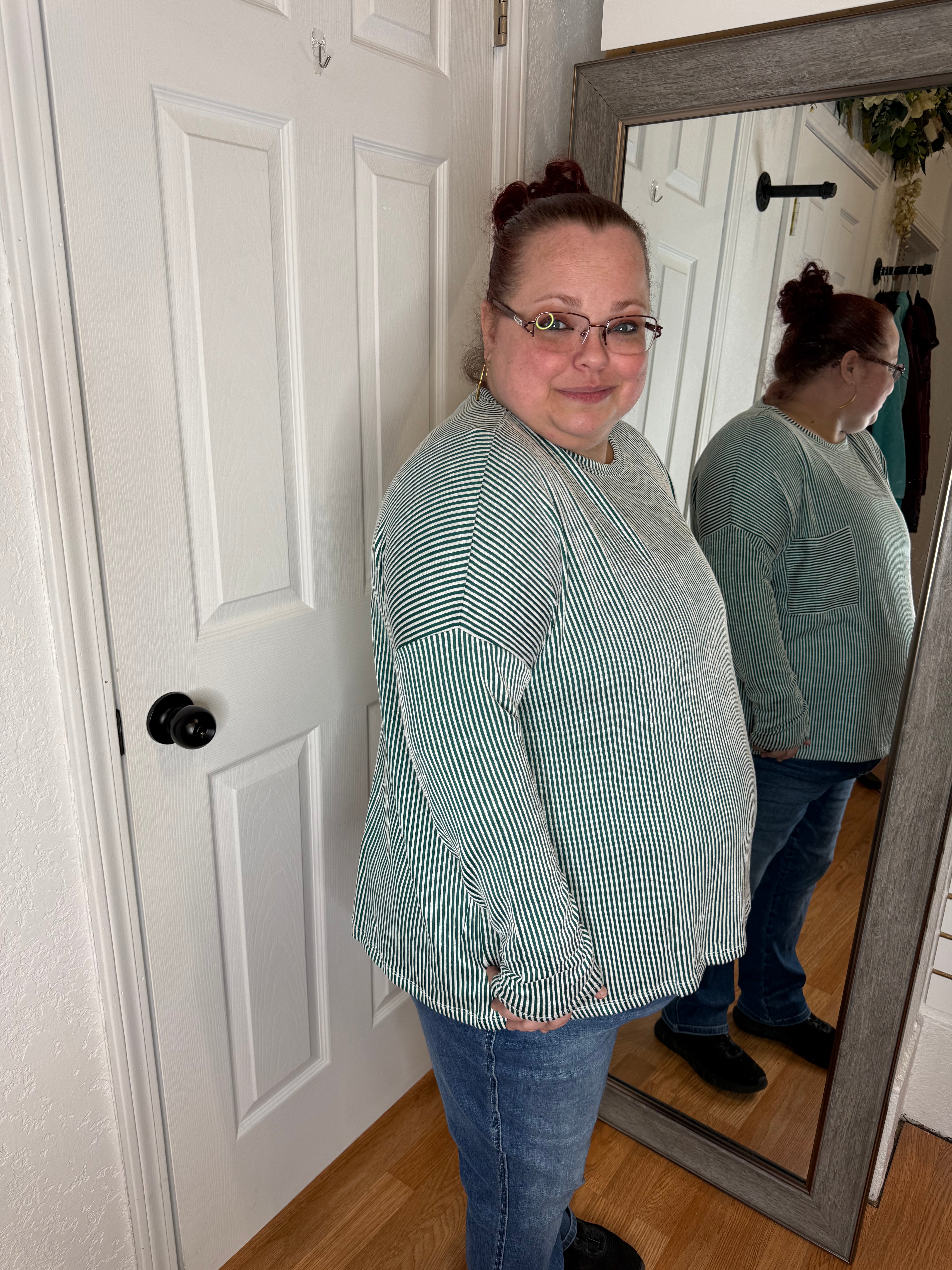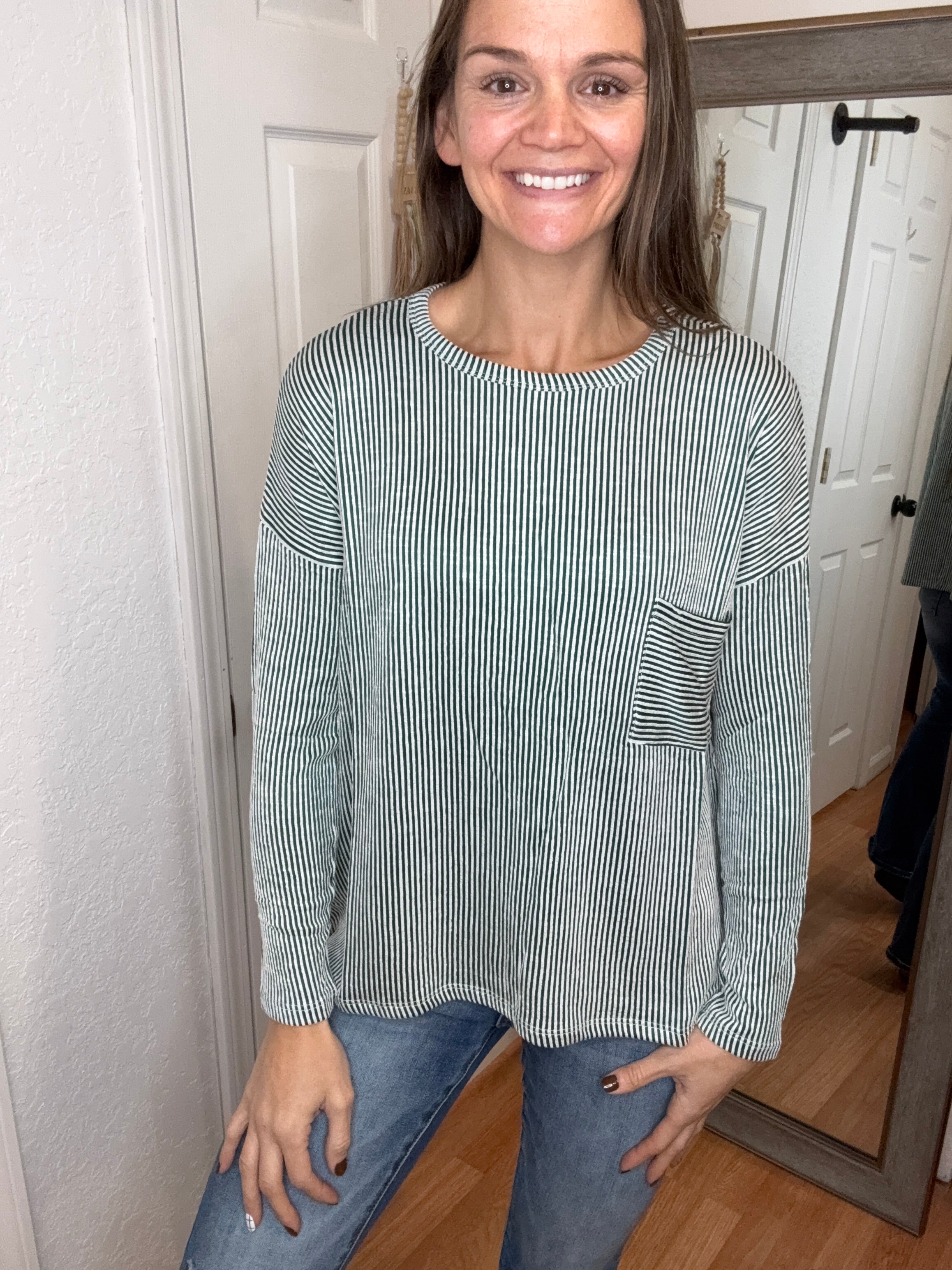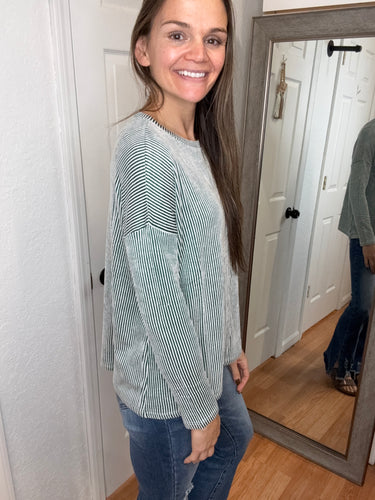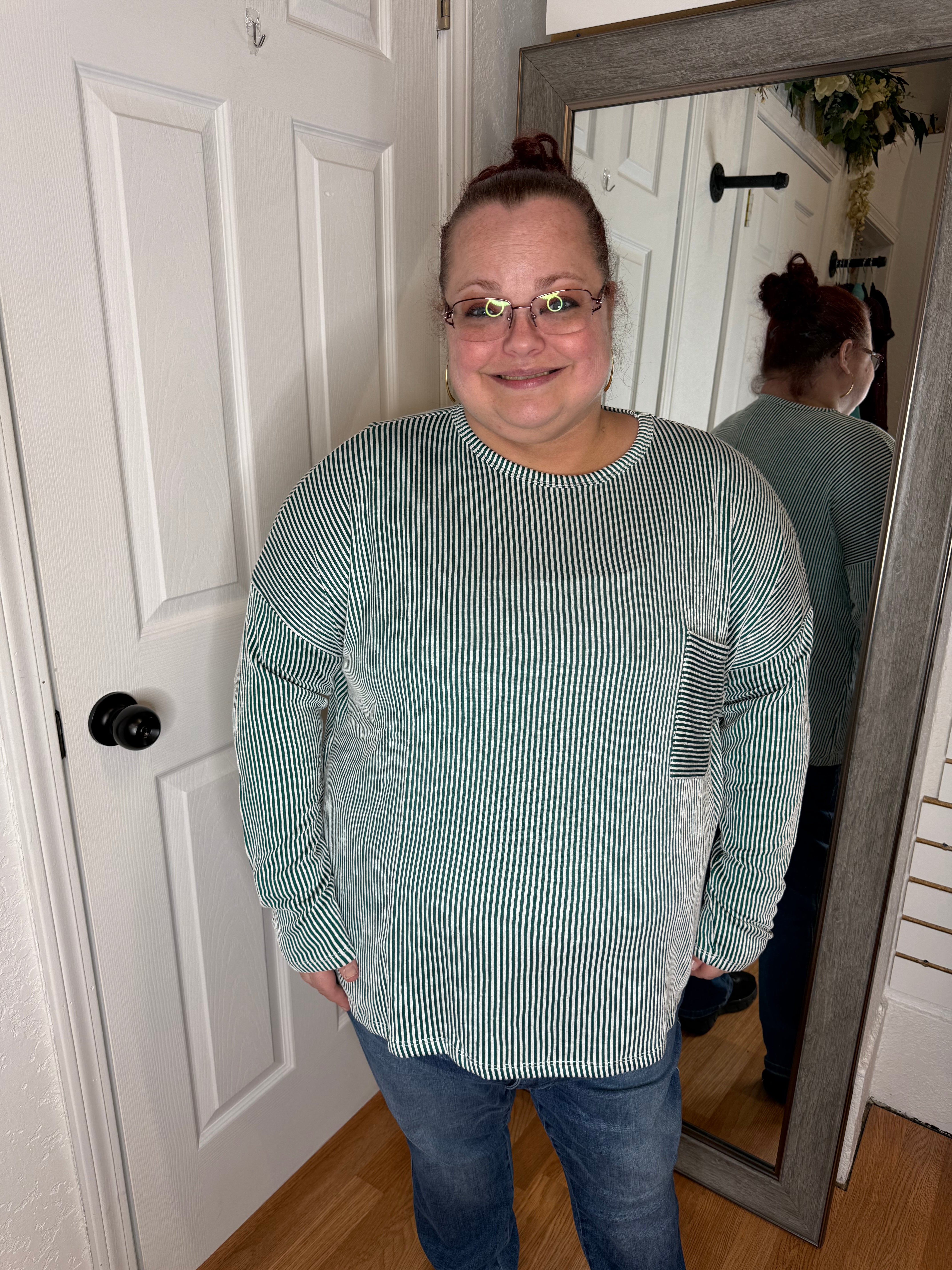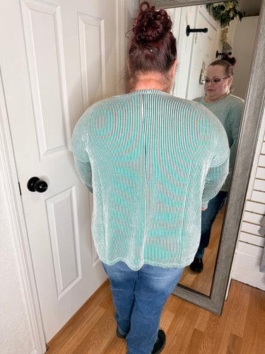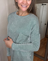 Embrace effortless style with the RINA Oversized Long Sleeve Top in green by Zenana. This ribbed striped design offers a relaxed, contemporary silhouette that works beautifully layered or worn solo. The generous oversized fit provides comfort without compromising on sophistication, while the long sleeves add versatility for any season. Perfect for casual outings or cozy days at home, this top celebrates your individual style with understated elegance. A wardrobe essential that adapts to your lifestyle.