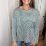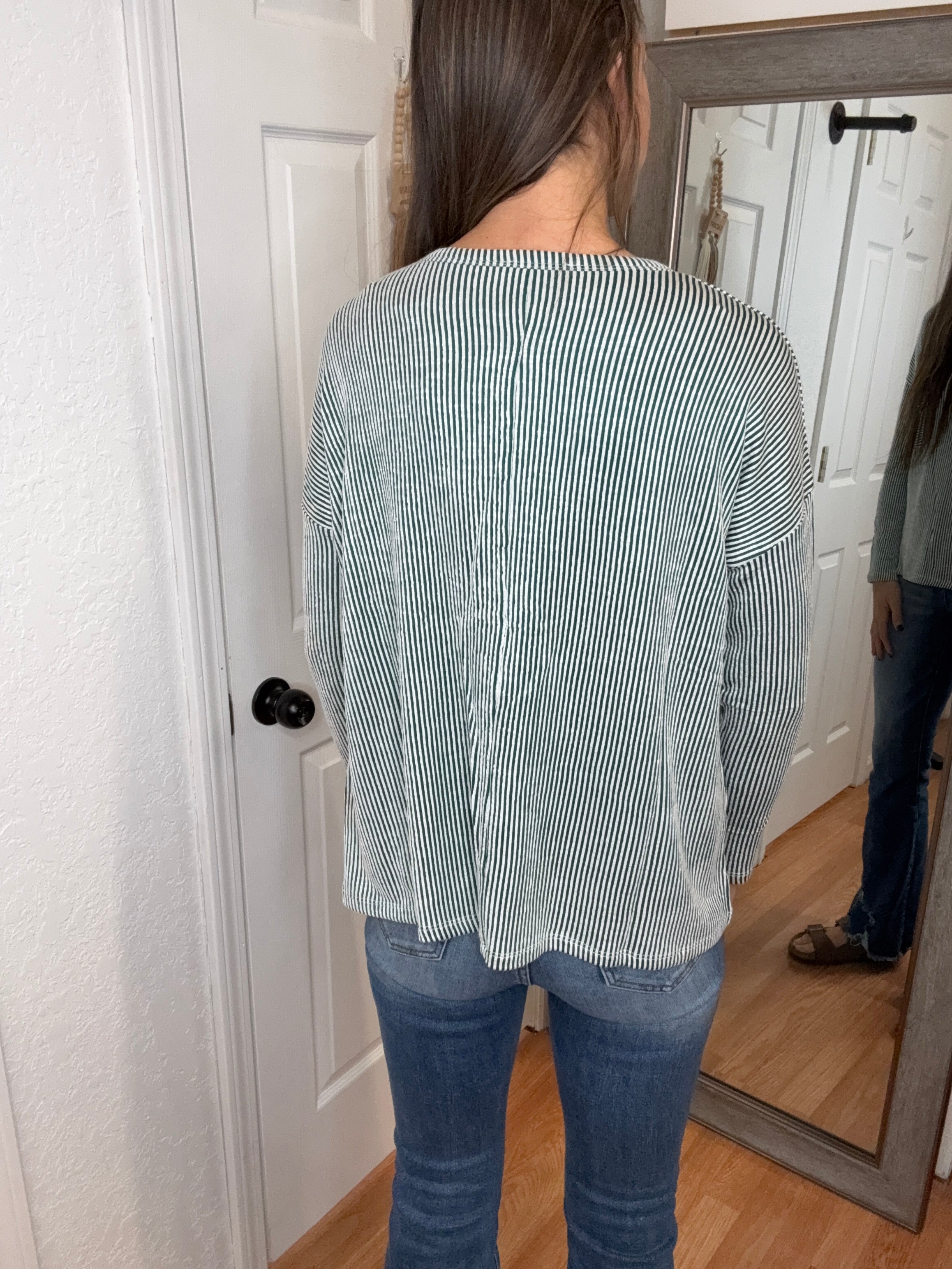 FEATURES: RIBBED STRIPED BOXY LONG-SLEEVE TOP