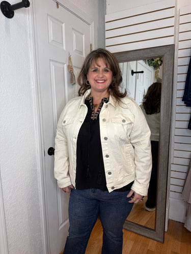 The Brinkey Cream Risen Denim Jacket offers a timeless style with a soft cream hue that complements any outfit. Crafted for comfort and durability, this jacket provides a versatile layering option perfect for cooler days. Its classic denim design pairs effortlessly with casual or dressier looks, making it an essential piece for your wardrobe. Stay cozy and stylish with the Bellatrix Denim Jacket.