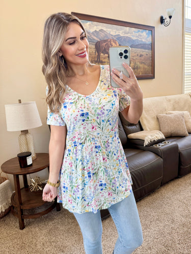 IN STOCK Sarah Ruffle Short Sleeve - Cottage Floral