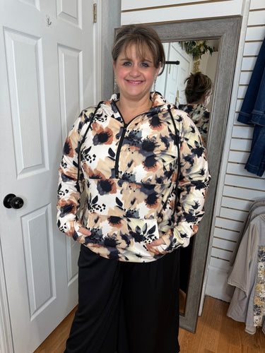 Wrap yourself in luxury with our Soft HalfZip Hoodie in the neutral abstract. Made from a soft, cloud-like fabric, this hoodie will keep you cozy and stylish during the cool fall season. The neutral colors of the abstract print add a touch of elegance to any outfit. Elevate your wardrobe with this exclusive piece.