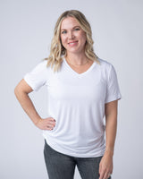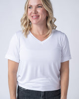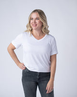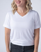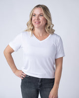 The Sophie Tee is the ultimate wardrobe essential. This versatile tee features a classic V-neckline and cuffed sleeves for a touch of casual elegance. Made from buttery soft, high-stretch fabric, it's perfect for layering or wearing on its own. This tee is sure to become your go-to piece for effortless style.