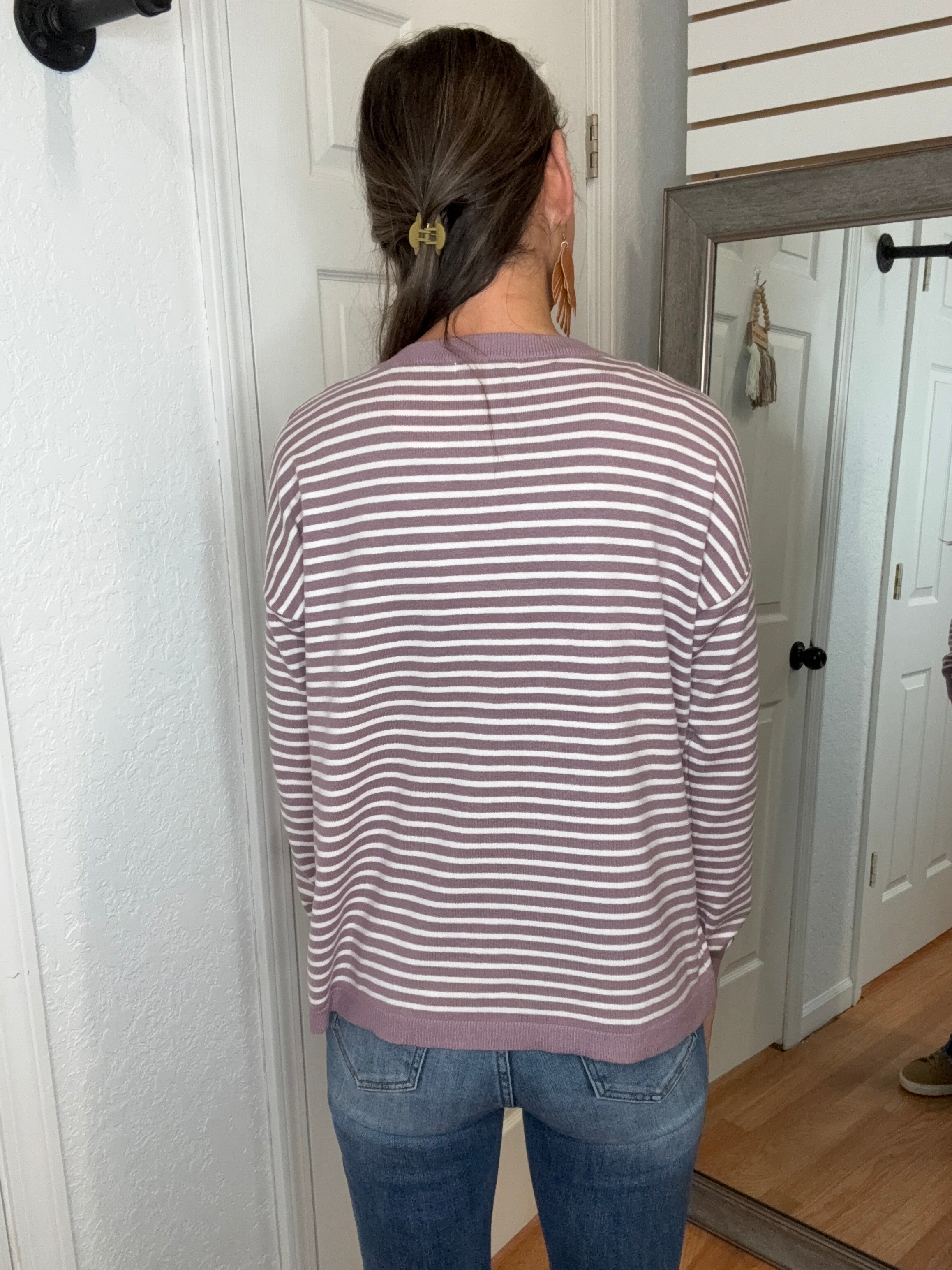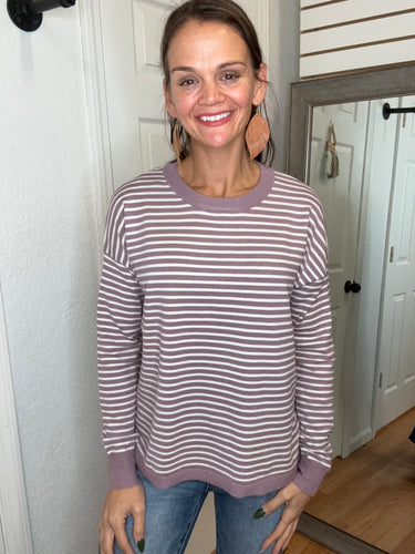 LAVYN PULLOVER STRIPED SWEATER TOP LAVANDER - STACCATO