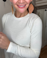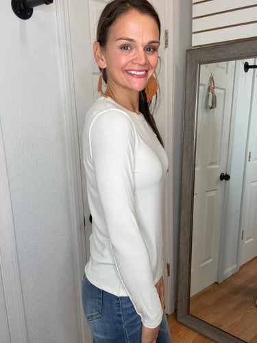 Embrace comfort and style with the Stella Long Sleeve Crew Neck Top in Off White. Crafted for a flattering fit, this versatile top offers soft, breathable fabric ideal for all-day wear. Its classic crew neck and long sleeves make it perfect for layering or wearing on its own, providing both warmth and effortless elegance. A wardrobe essential that supports your everyday look with timeless ease.
