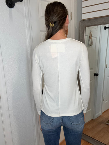FEATURES: LONG SLEEVE BASIC TOP, CREW NECK, WITH EXPOSED SEAMS