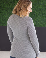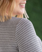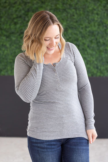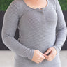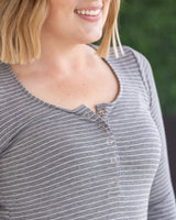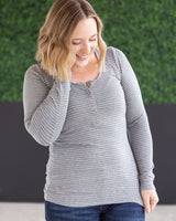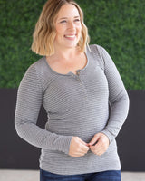 IN STOCK Striped Henley Long Sleeve - Charcoal