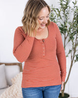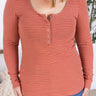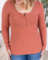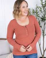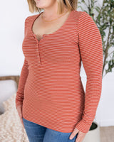 IN STOCK Striped Henley Long Sleeve - Terra Cotta