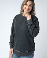 Wear comfort and style together with this Vintage Wash pullover. It has a classic crew neck design with a vintage wash and feminine detailing for a unique touch. Cozy and stylish, it's a must-have for your wardrobe.
