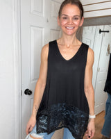 Laura Lace Trimmed Sleeveless Top Black- Vocal