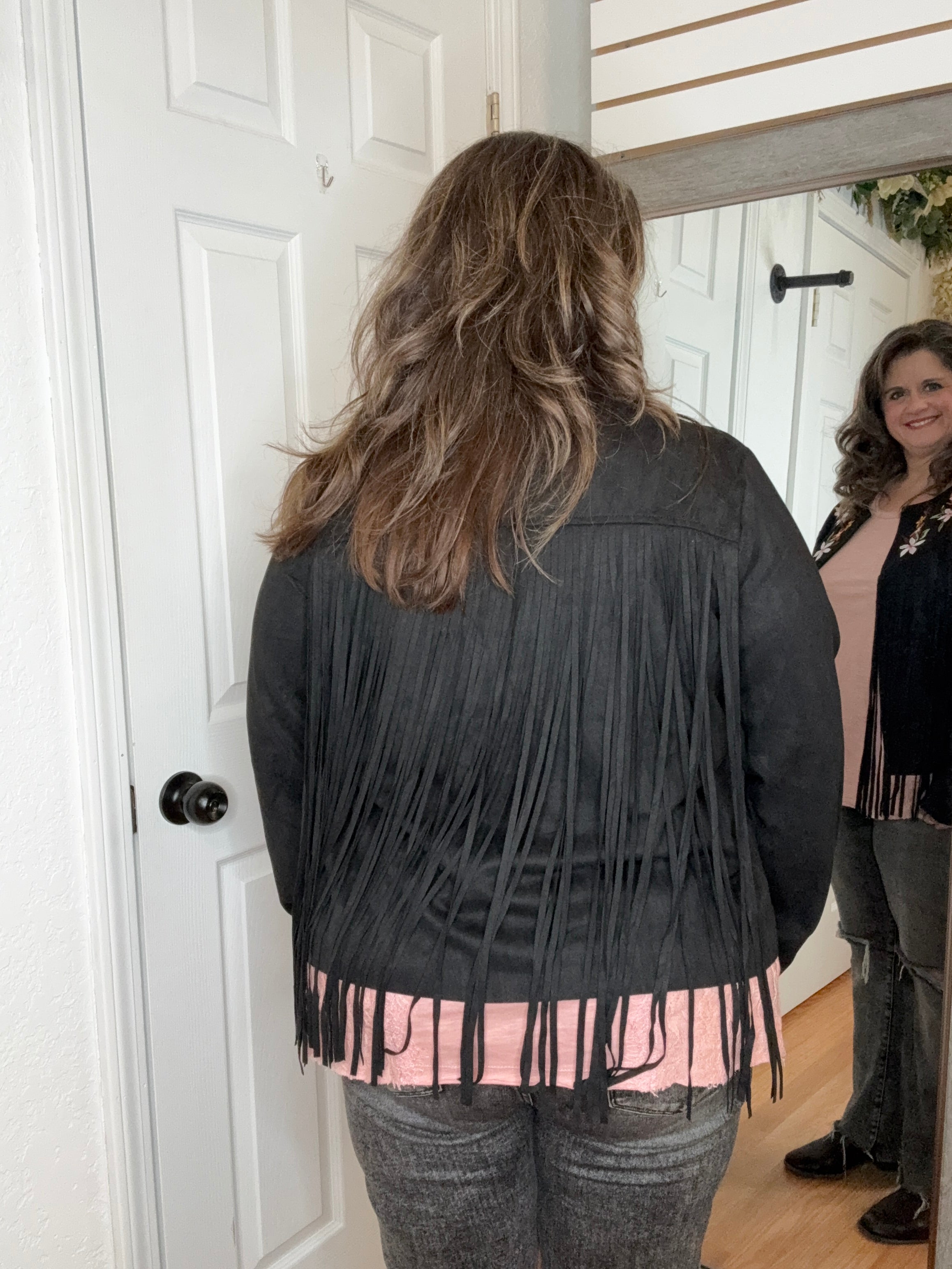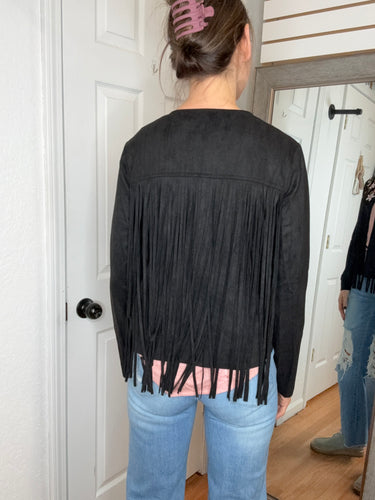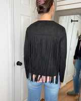 Arden Suede Fringe Layering Jacket Black- Vocal